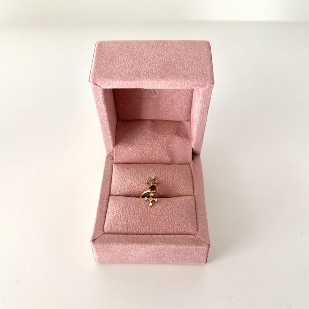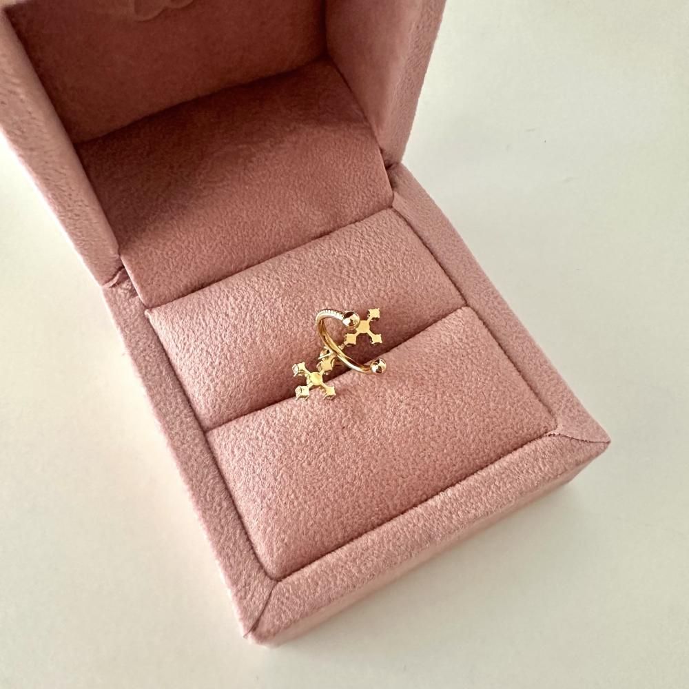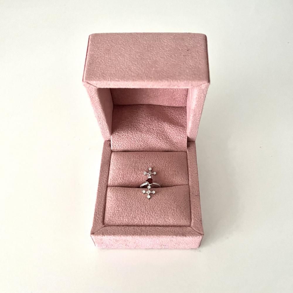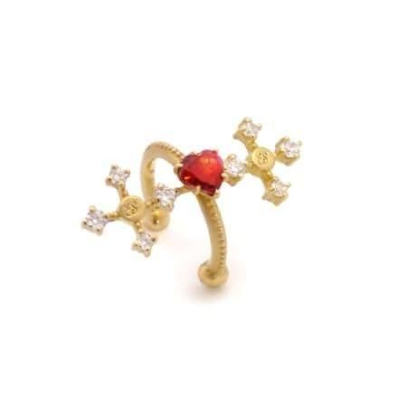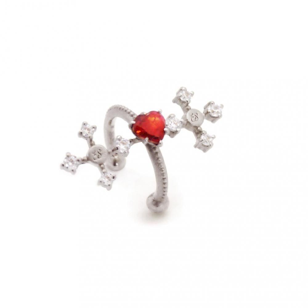 真っ赤なハートとサイドの十字架がアクセントの大ぶりなリップリング。