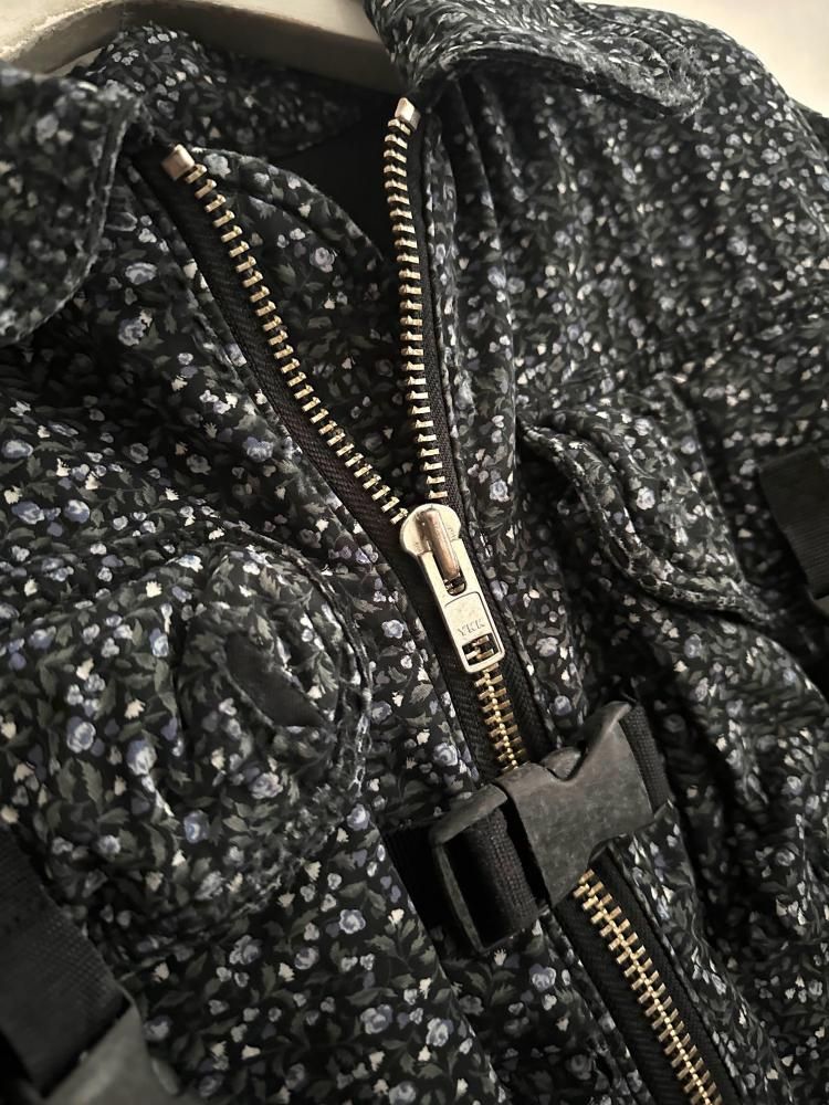ガーリーな花柄生地に対し、全面にダメージ加工を施すことで退廃的でビンテージ感のる