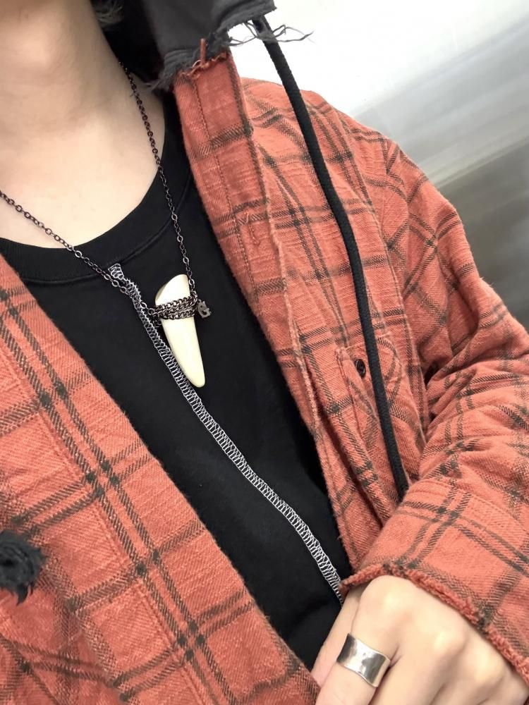 水牛の角にチェーンを巻きつけたネックレス。