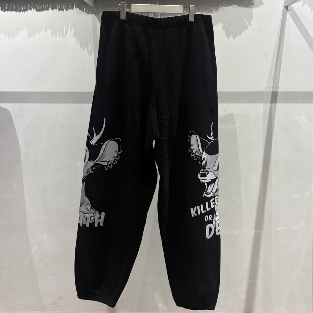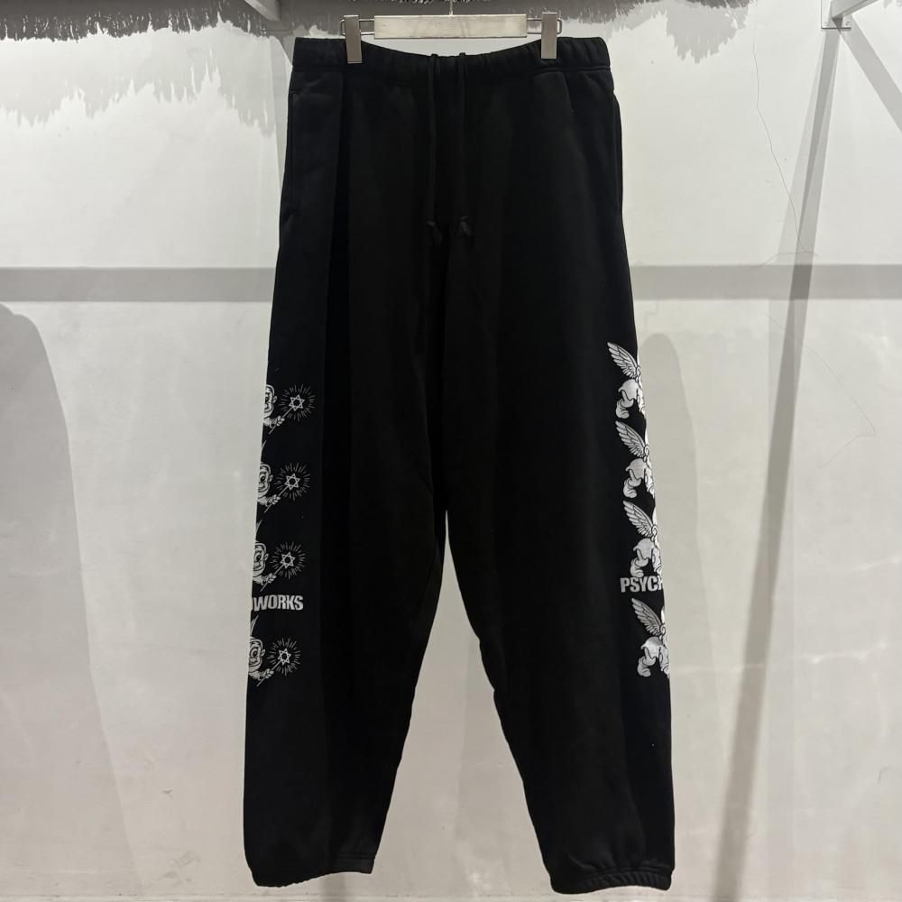 サイドにオリジナルグラフィックをプリントしたビッグシルエットのスウェットパンツ。