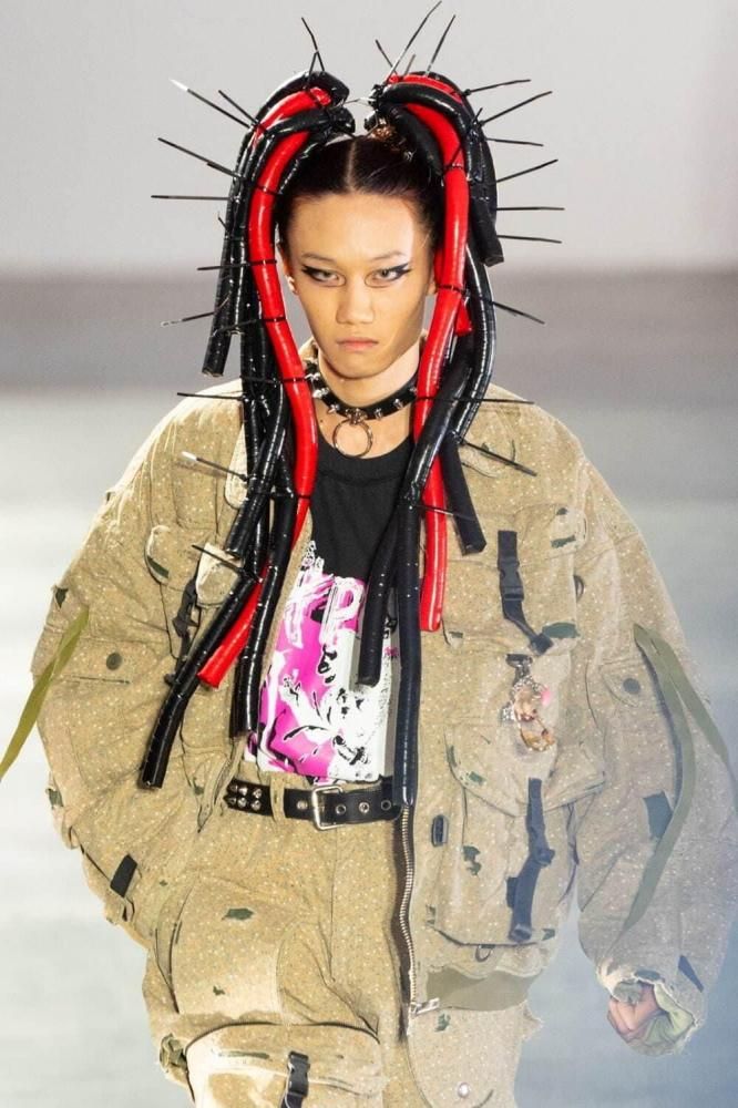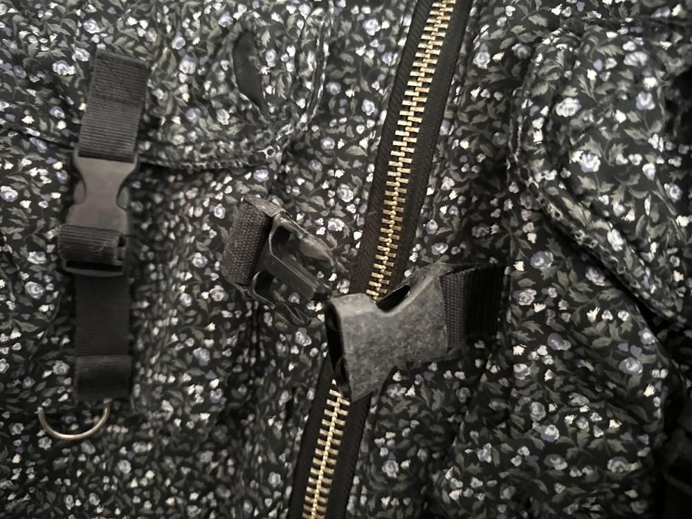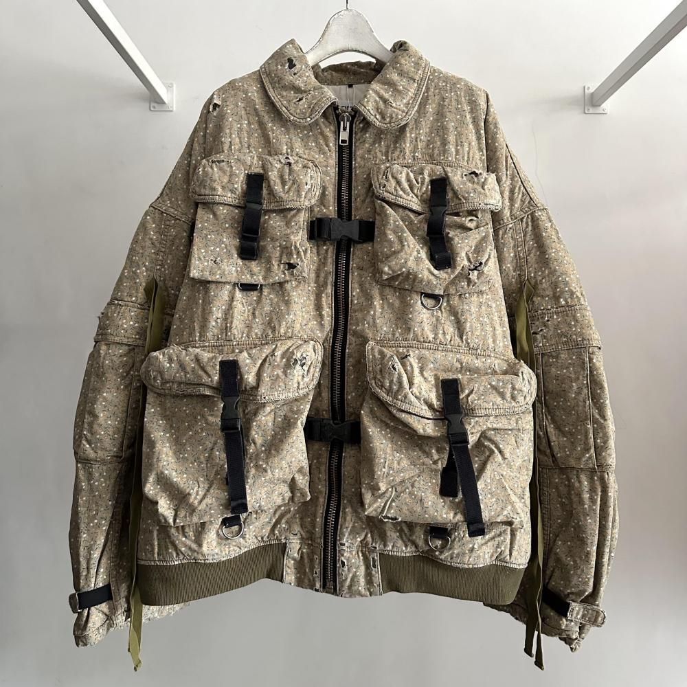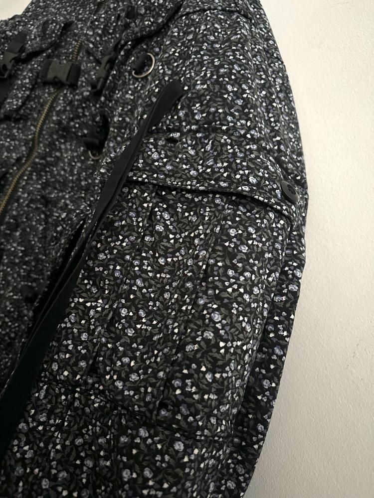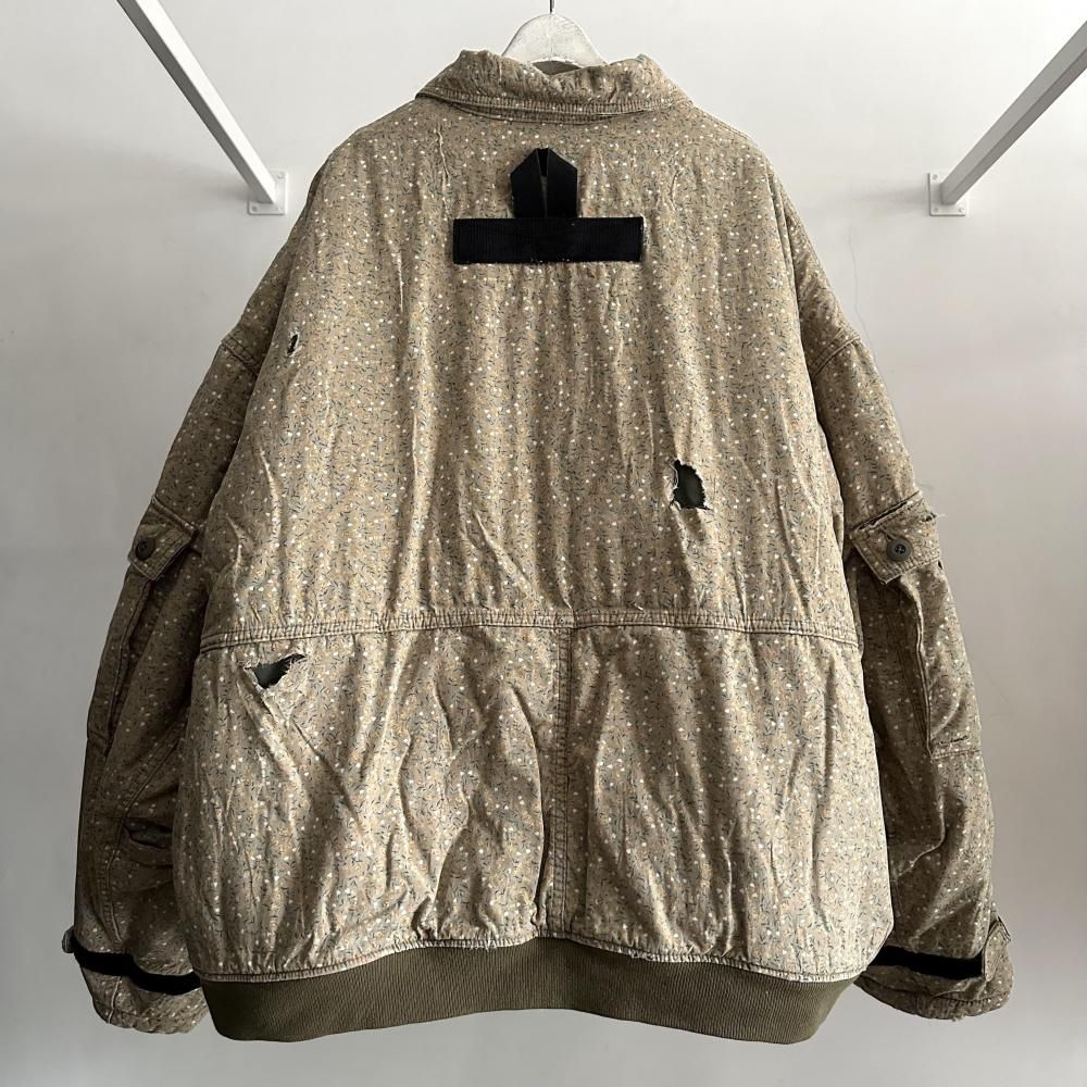 ガーリーな花柄生地に対し、全面にダメージ加工を施すことで退廃的でビンテージ感のる